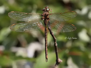 The Fawn Darner a mostly colorless spotted darner typically found around streams. They are primarily tan or brown with two yellow spots on each side of their thorax. They may have faint yellow spots on the top of the abdomen