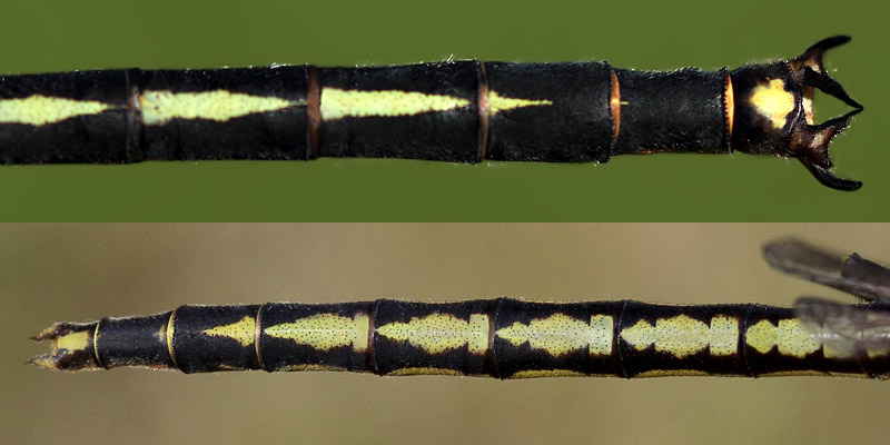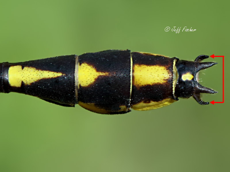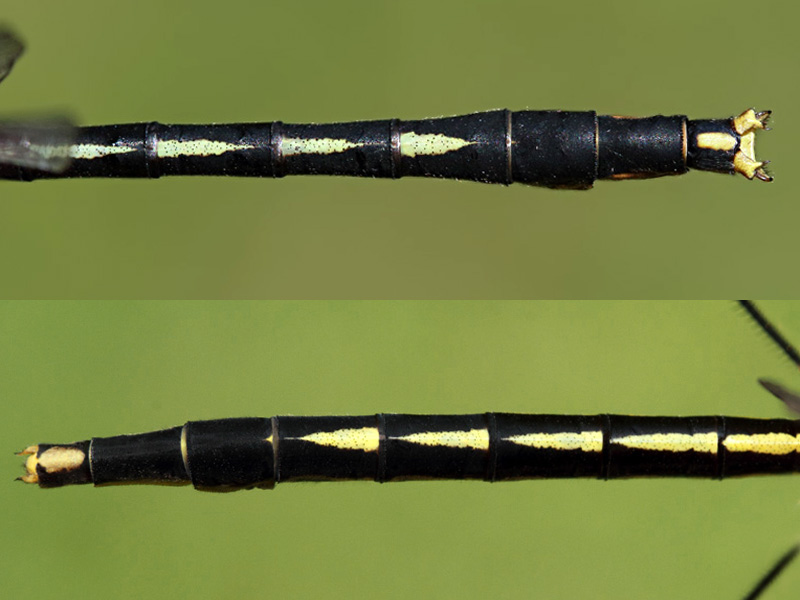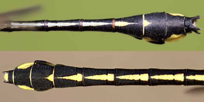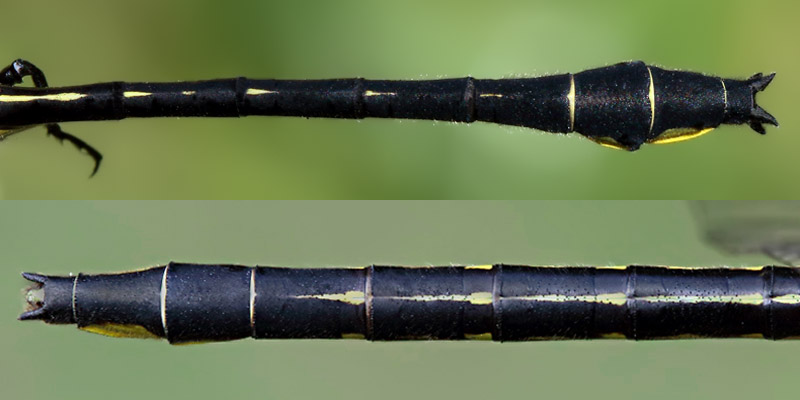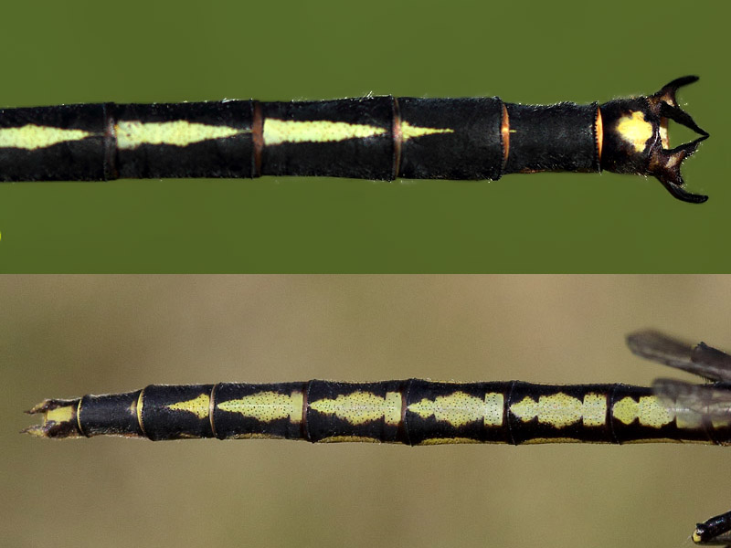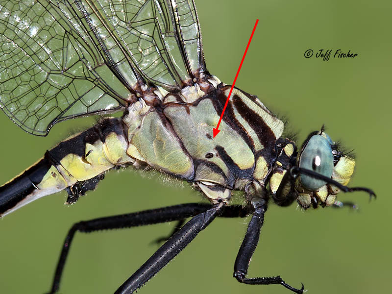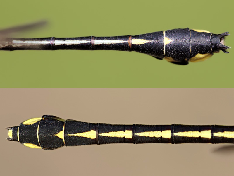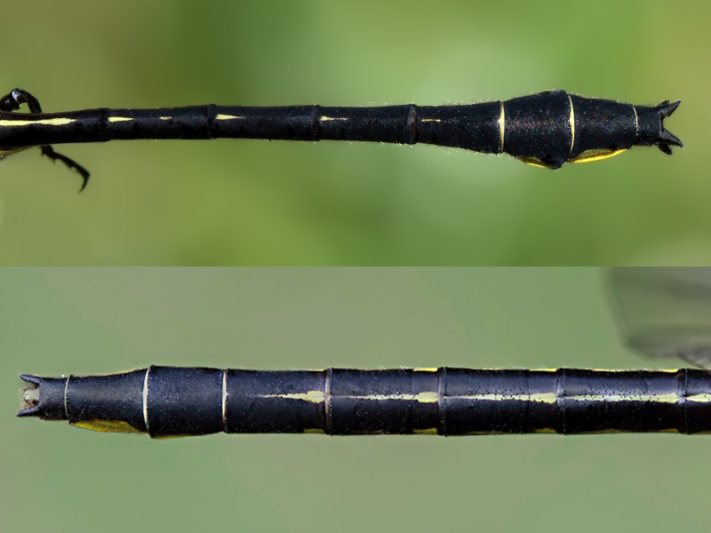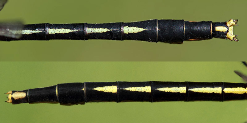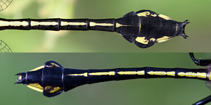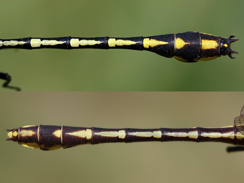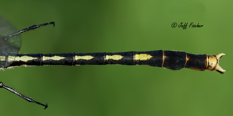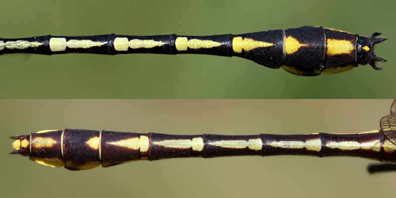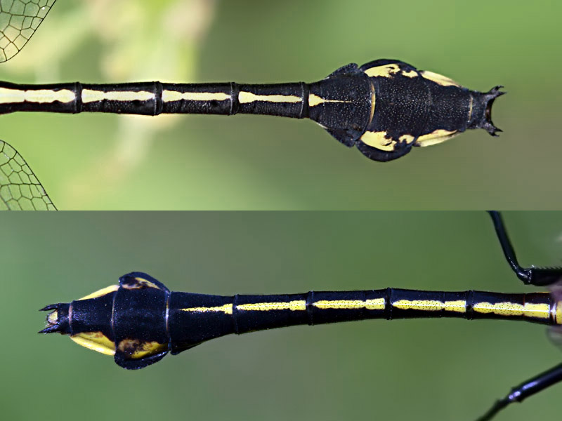 Many Clubtail species can be identified by the topspots and sidespots on their abdomen. Males can also be identified by their club and terminal appendages. Females may need to have their subgenital plates