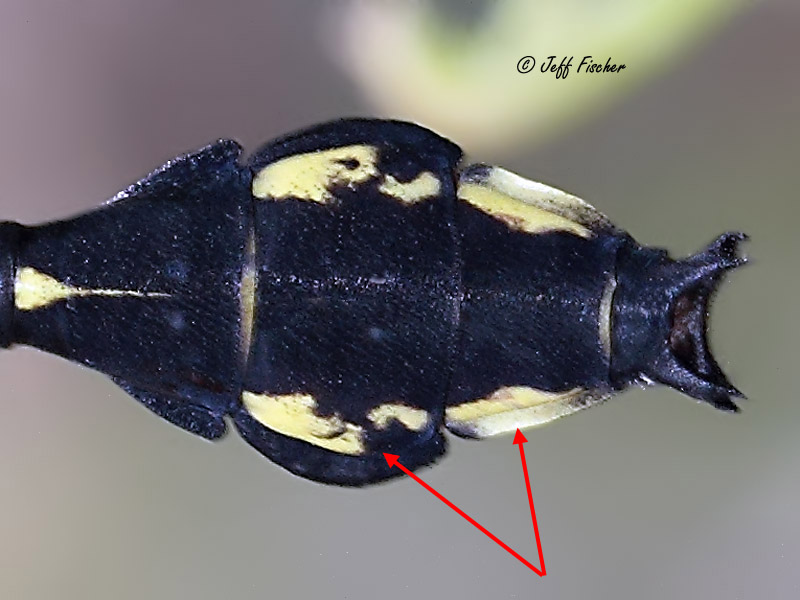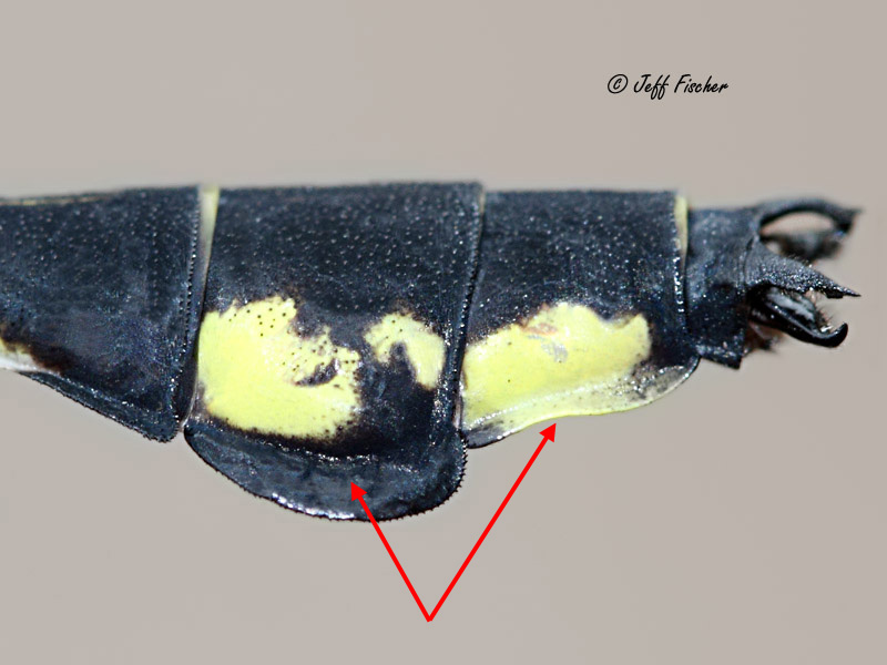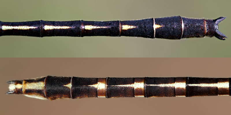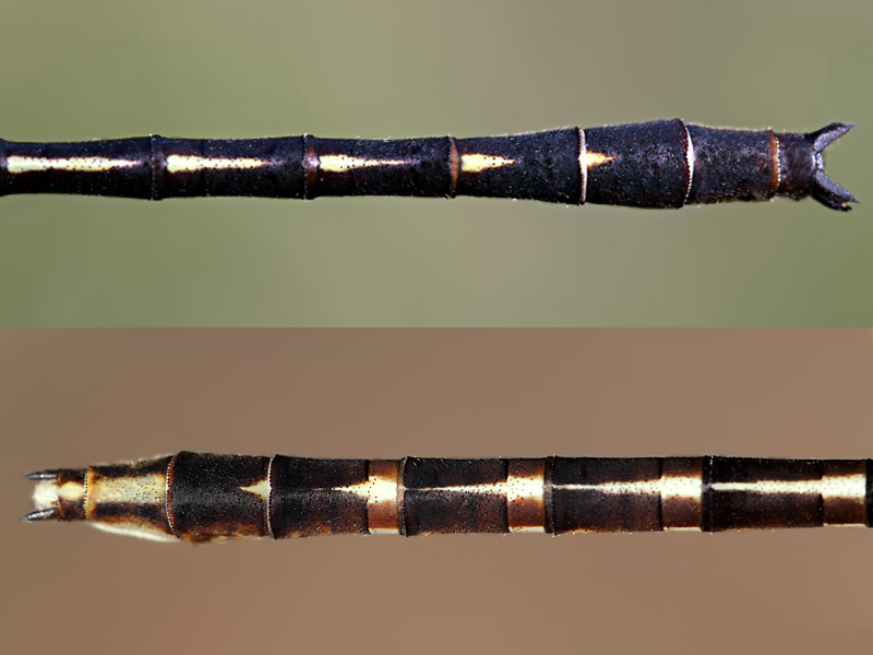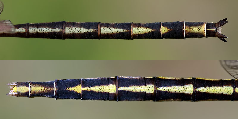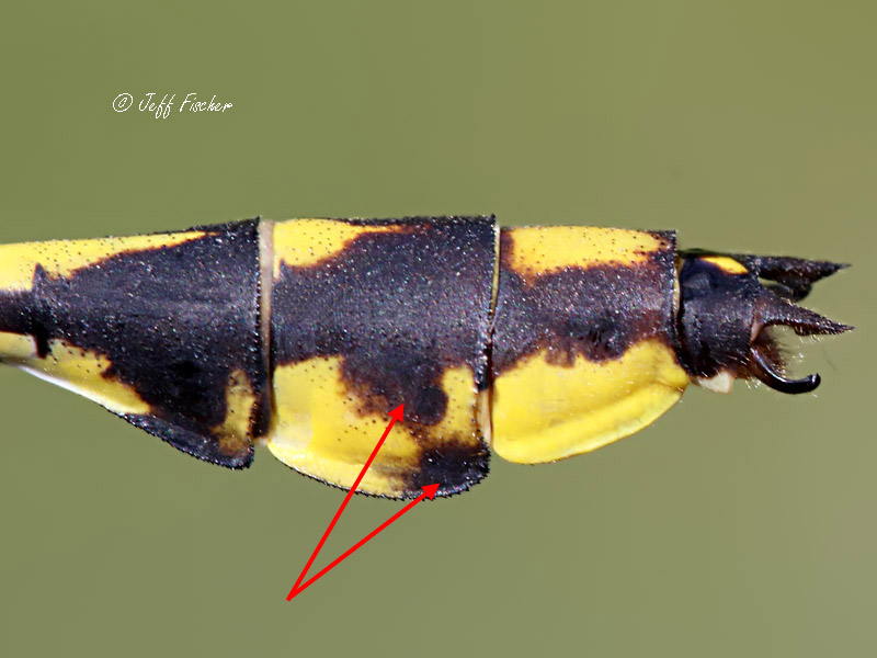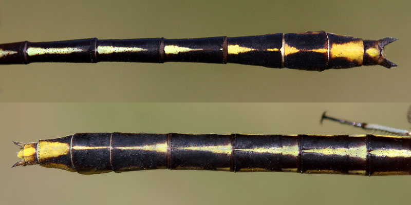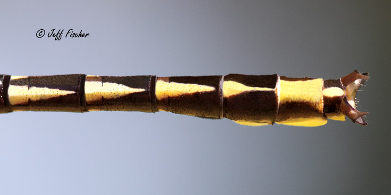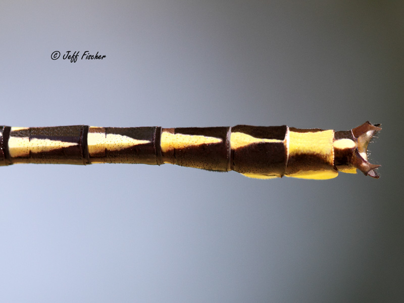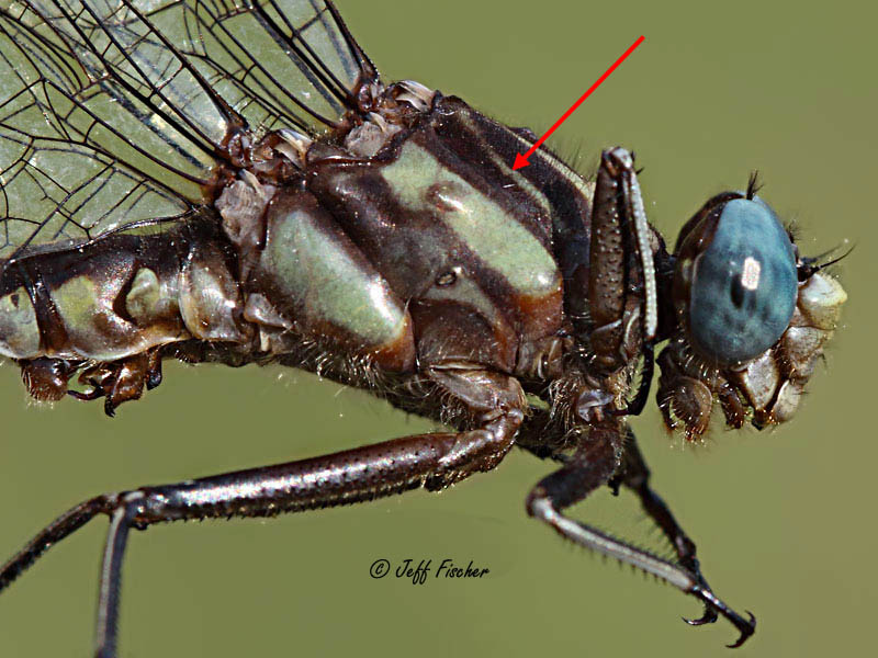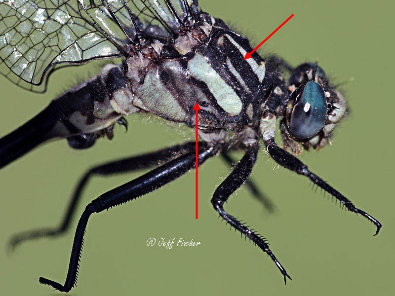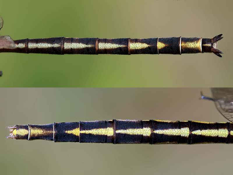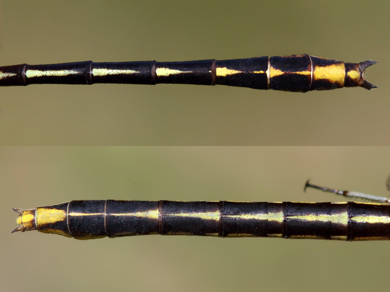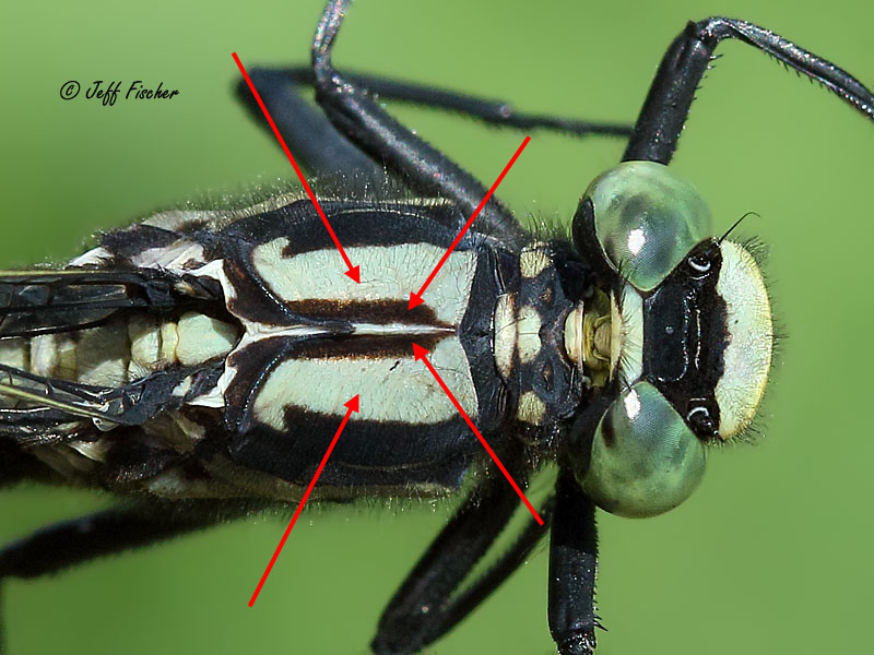 Many Clubtail species can be identified by the topspots and sidespots on their abdomen. Males can also be identified by their club and terminal appendages. Females may need to have their subgenital plates