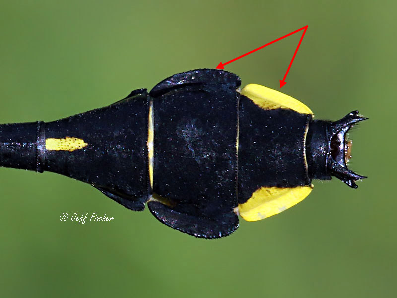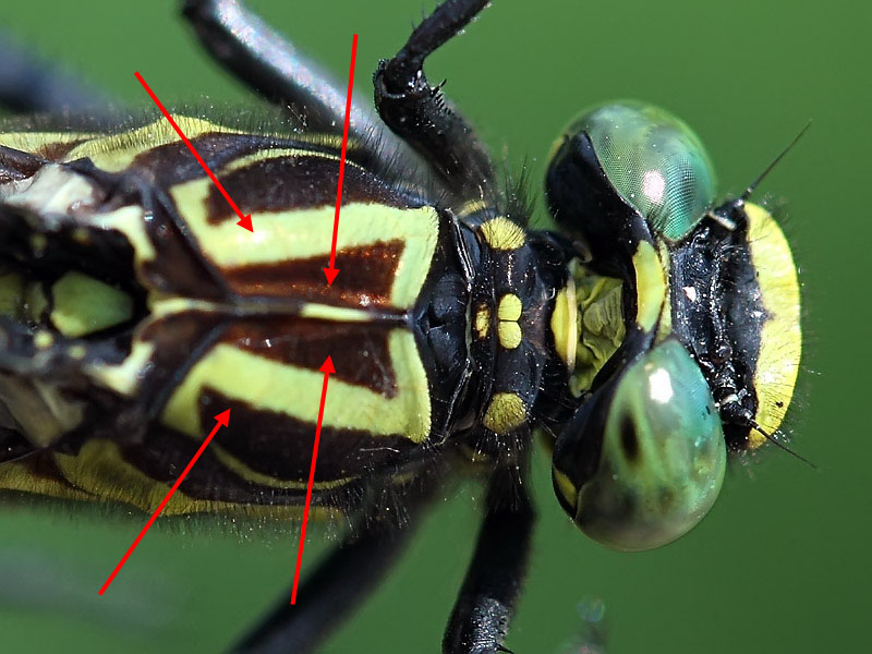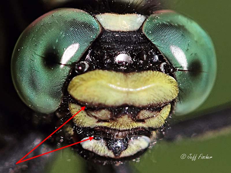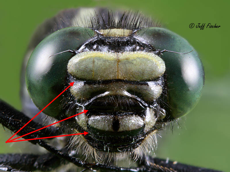 This may include a black line separating the frons from the postclypeus and/or other black markings near the mouth