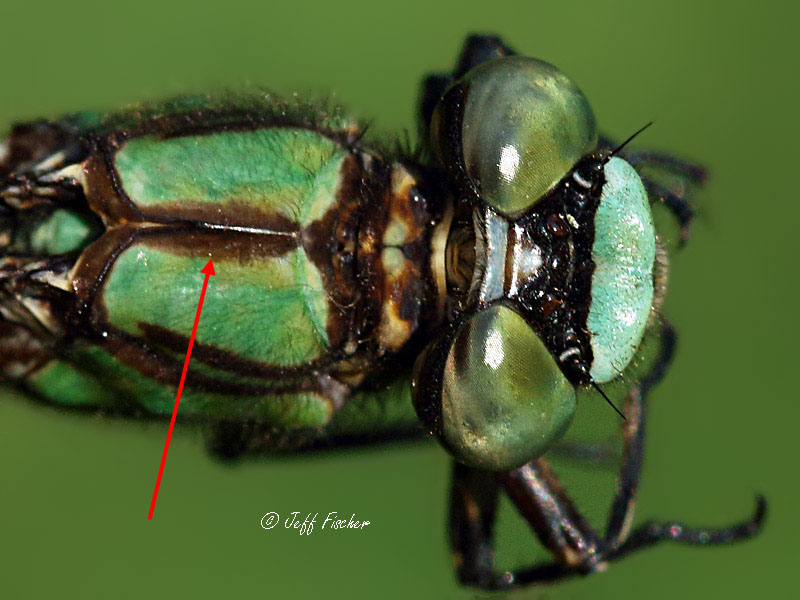 To further determine which Snaketail species the specimen is, look at the top of the thorax behind the eyes