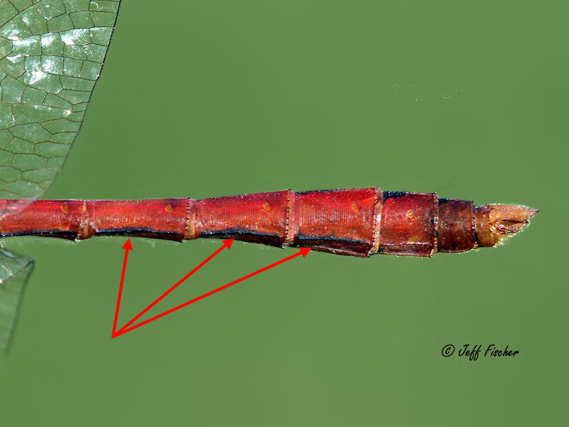 Most of the mature male Whiteface (Leucorrhia) and Meadowhawks (Sympetrum) are red and black while the immature males and the females are yellow/gold and black.