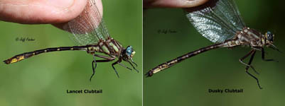 A small dark Clubtail with blue eyes that is common throughout most of its range. The Lancet Clubtail was moved from the genus Gomphus to the new genus Phanogomphus. The Lancet Club is smaller than all of the other Phanogomphus in the area except for the Rapids Clubtail, which is around the same size