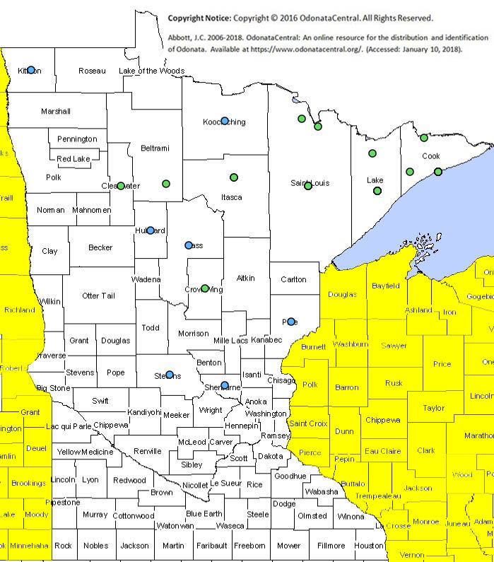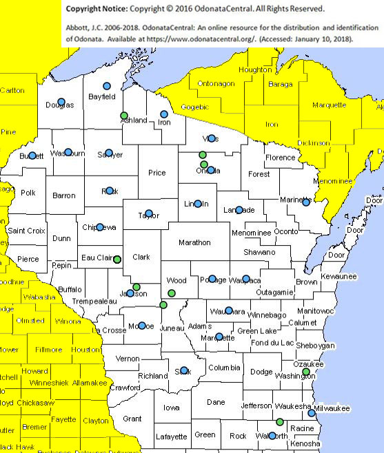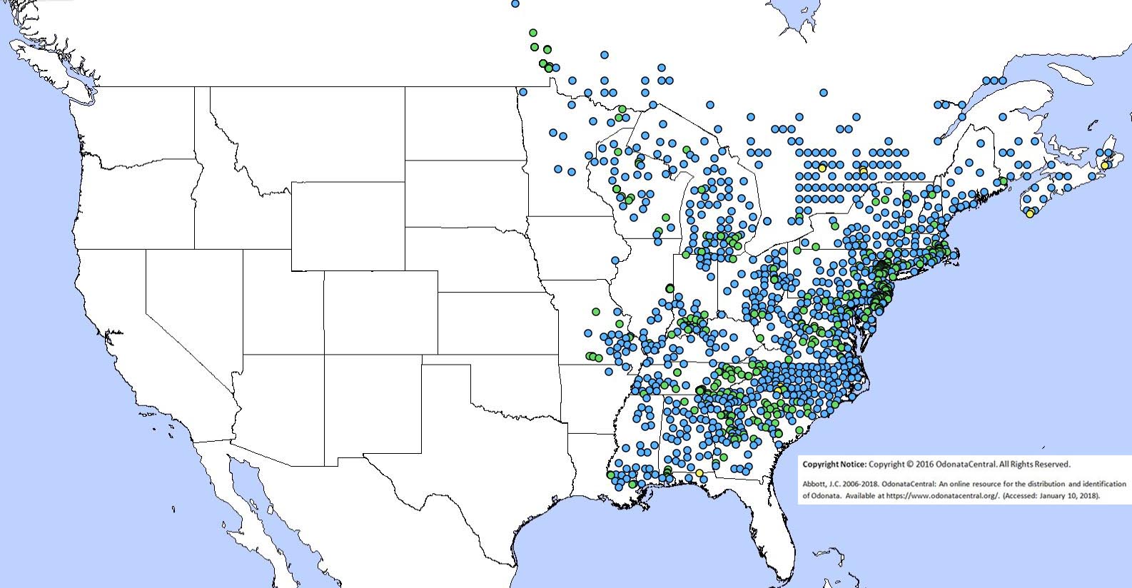 Range maps and checklists courtesy of Odonata Central. Copyright © 2016 OdonataCentral. All Rights Reserved. Abbott, J.C. 2006-2018. OdonataCentral: An online resource for the distribution and identification of Odonata. Available at www.odonatacentral.org.