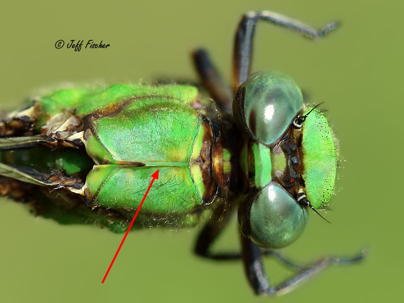 To further determine which Snaketail species the specimen is, look at the top of the thorax behind the eyes