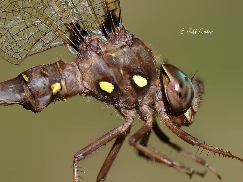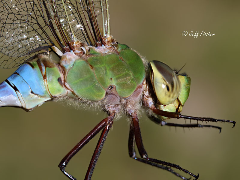 Members of the Aeshnidae Family (Darners) have large eyes that come together along a long margin making them appear to be wearing a helmet.
