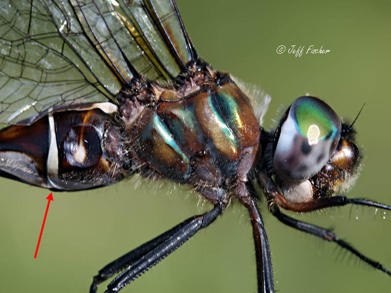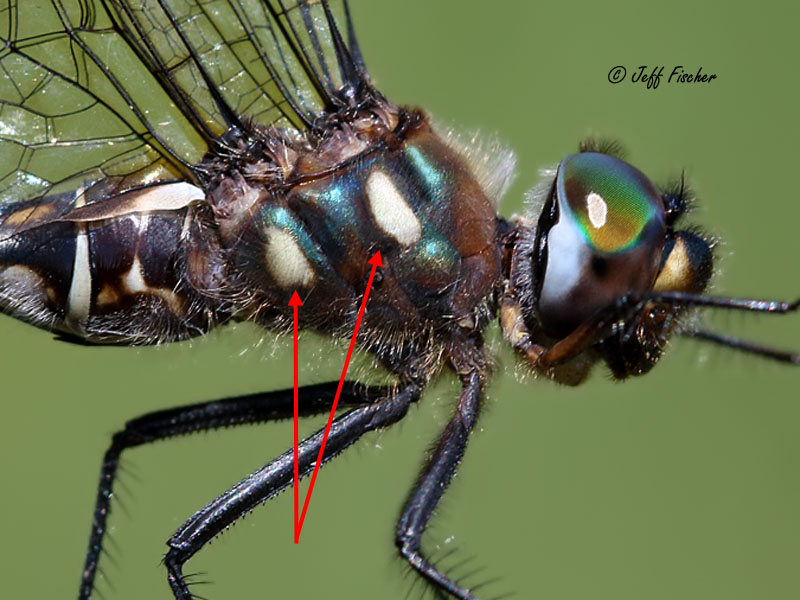 Many species of Emeralds can be identified to family by their bright green metallic eyes or the metallic emerald sheen of their thorax