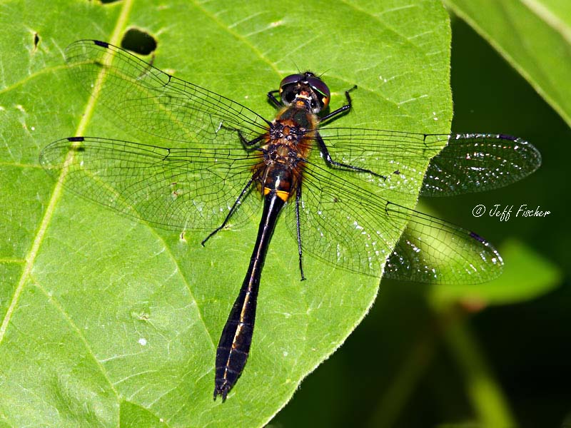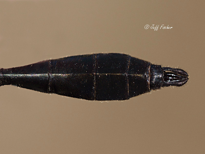 Is the specimen smaller than most emeralds, with a wide, irregular yellow ring between segments 2 and 3, and a clubbed abdomen ?