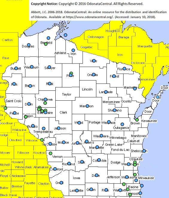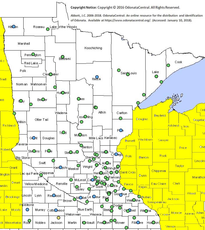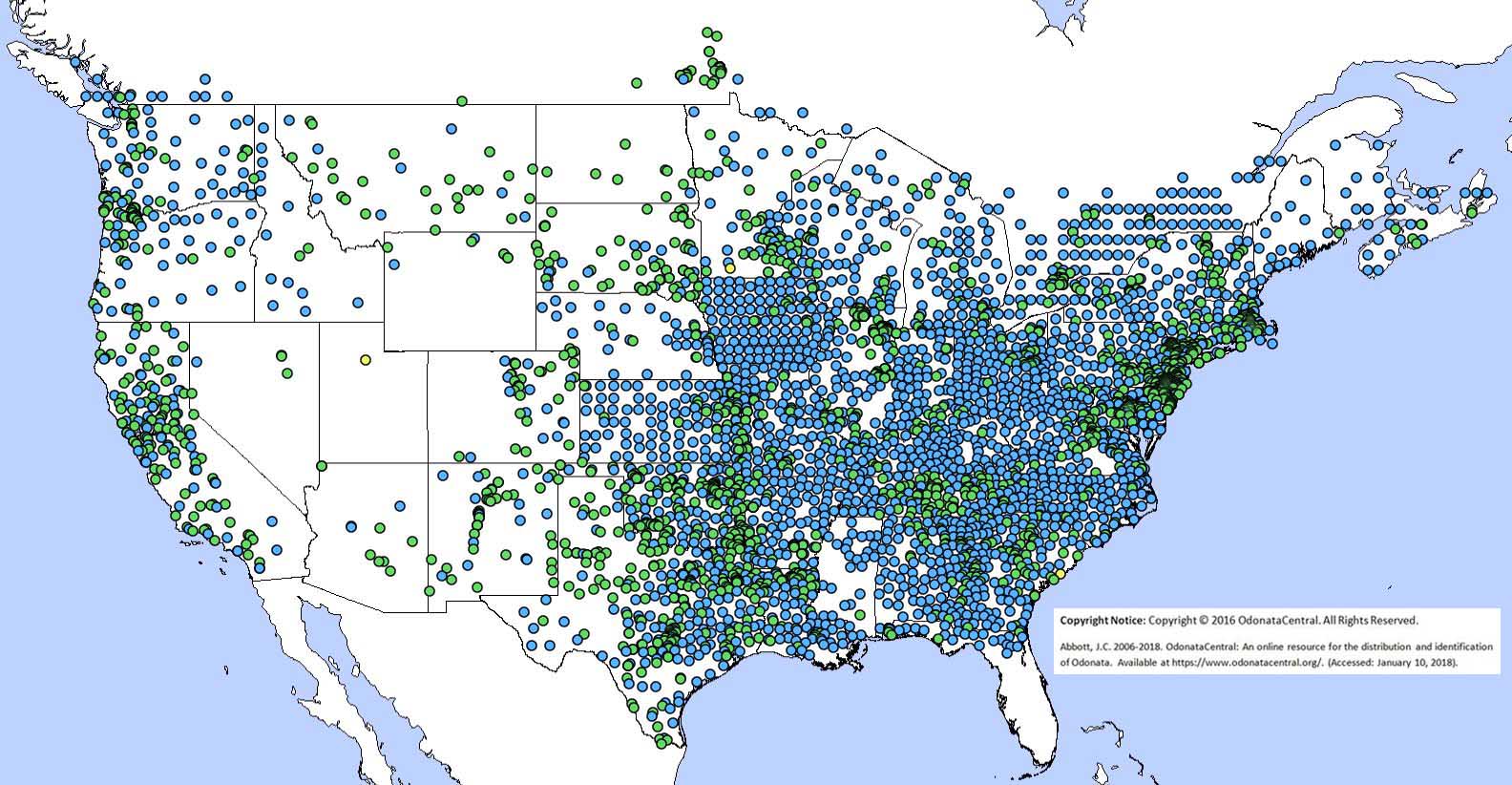 Range maps and checklists courtesy of Odonata Central. Copyright © 2016 OdonataCentral. All Rights Reserved. Abbott, J.C. 2006-2018. OdonataCentral: An online resource for the distribution and identification of Odonata. Available at www.odonatacentral.org.